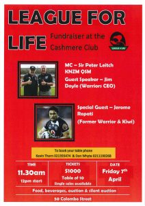 There’s still plenty of tickets available and League 4 Life needs the support of the Canterbury Rugby League community. To book your table for the League 4 Life fundraiser at Cashmere Club on Friday, April 7, phone Kevin Thorn on 021355474 or Don Whyte on 0211190268.