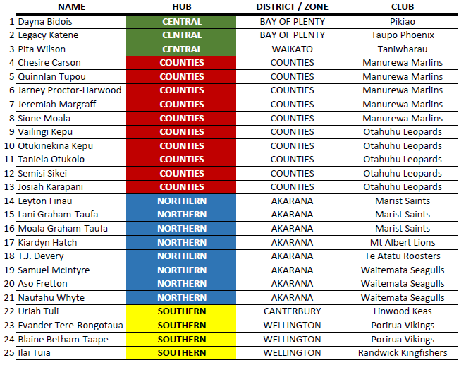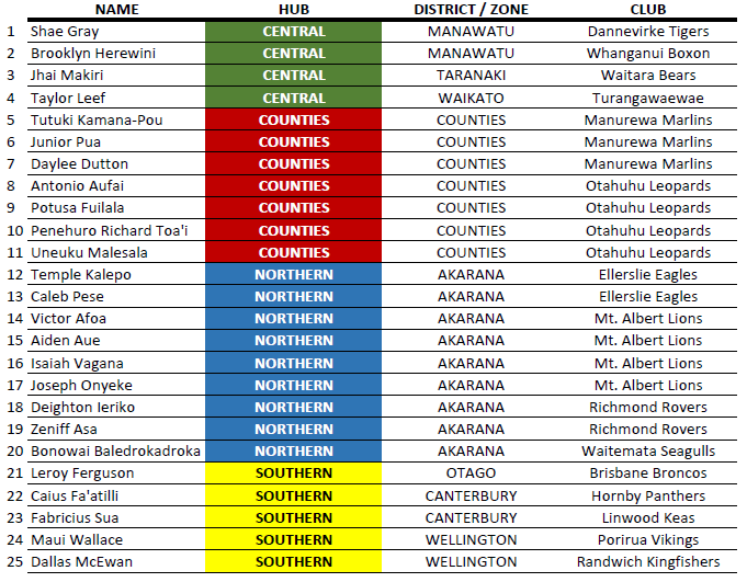 Following the conclusion of the Talent Development Programme, New Zealand Rugby League is excited announce the 25-man squads for the NZ16s residents and NZ18s residents. Congratulations to all of those selected.