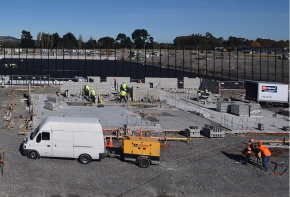 We’ve laid the athletics track gel coat and work is currently underway on the top weatherproof surface. Seats are up in the covered seating area and we’re preparing to install the roof. The athletics control tower has also been built to the first level.It’s full steam ahead at Ngā Puna Wai Sports Hub with loads of progress over the last month.