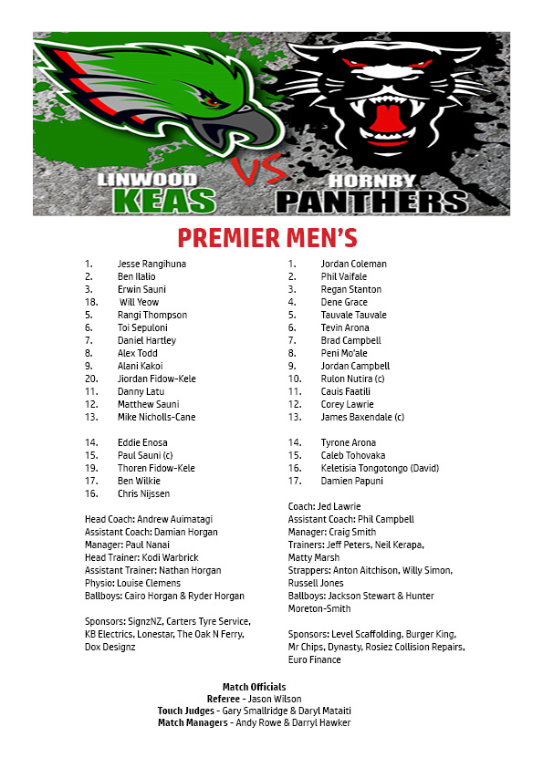 The battle between veteran Keas halves Toi Sepuloni and Daniel Hartley, and the Panthers’ youthful Rockcote Canterbury Bulls incumbents Tevin Arona and Brad Campbell will be vital. Dual Mel Cooke Trophy winner Alex Todd will lead the Keas’ pack from the front with captain Paul Sauni coming off the bench, and former backline mainstays Matt Sauni and Danny Latu pairing up in the second-row. The Panthers’ have a plethora of experience and class in the pack headlined by co-captains Rulon Nutira and James Baxendale, and the warhorse Corey Lawrie. But Hornby’s teenage second-rower Caius Faatili looms as arguably the player most capable of busting the grand final wide open.