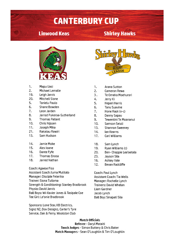 1pm – Canterbury Cup Premier Reserves Grand Final: Linwood Keas v Shirley Hawks @ Ngā Puna Wai – Rugby League 2