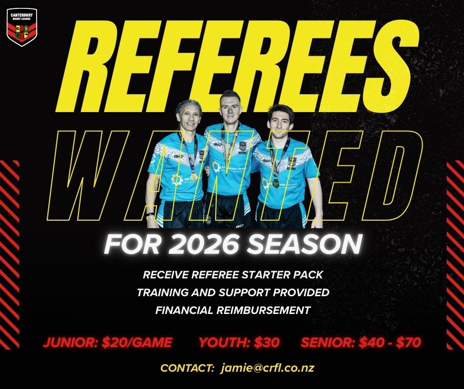 Interested in becoming a Canterbury Rugby League referee? Contact jamie@crfl.co.nz for more information.