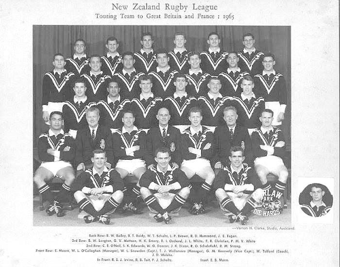 Originally a centre, the 1955-56 Schoolboy Kiwi gravitated towards the pack and broke into the Canterbury – playing against the 1965 Australian tourists – and South Island teams before securing a spot in the Kiwis’ touring team.