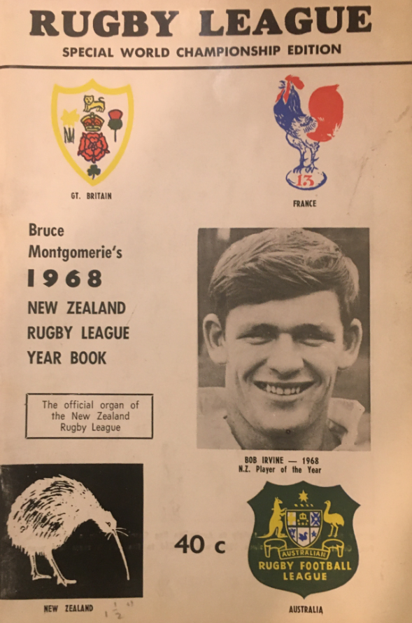 Unavailable for the 1966 home series against Great Britain, Irvine returned for the 1967 tour of Australia and featured prominently in all three Tests. He was moved to five-eighth for the second Test at Lang Park and defied an ankle problem to snaffle the ball from the great Reg Gasnier and scarper 35 metres for a try. Returning to halfback, Irvine’s tenacious performance was integral to New Zealand’s honourable 13-9 loss in the third-Test dead-rubber at the SCG.