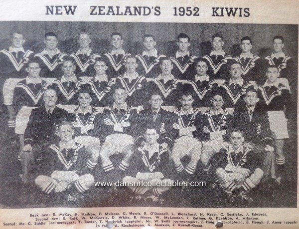 A long-serving selector for province, island and country from 1936, Amos coached Canterbury (1946-54), South Island (1936-39, 1947-55) and New Zealand (1952-54). He was at the helm for the Kiwis’ watershed 2-1 Test series triumphs against Australia away in 1952 – including the stunning, record-shattering 49-25 second-Test win at Lang Park – and at home in 1953. The Kiwis finished their 1952 tour of Australia with the fine record of 10 wins and three losses, also recording victories in their sole clashes with NSW and Queensland.